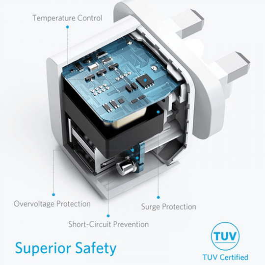 يكتشف PowerIQ من Anker أجهزتك ويضبط خرج الجهد وفقًا لذلك، مما يوفر شحنًا مخصصًا ومحسنًا.اشحن أي جهازين في نفس الوقت، الهواتف، الأجهزة اللوحية، سماعات الرأس، أجهزة الشحن المحمولة، والمزيد.هذا الشاحن أصغر من كرة الجولف، وهو الرفيق...Regular price AED 45.00 -