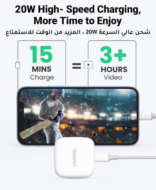 شاحن بقوة 20 وات بمنفذ USB-C PD من Ugreen