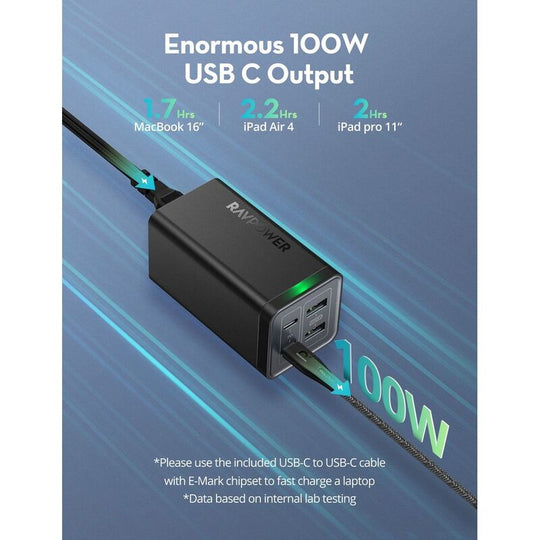 شاحن بقوة 120 وات بـ 4 منافذ مع كابل شحن بقوة 100 وات من RAVPower