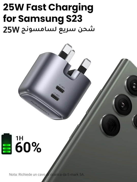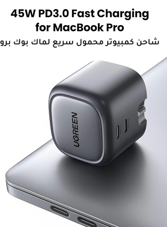 شاحن جداري بقوة 45 وات مع منفذين للشحن من Ugreen