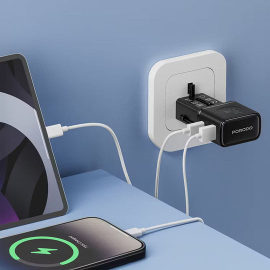 شاحن جيب عالمي للمسافرين بقوة 65 واط من Porodo