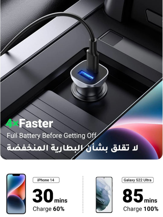 شاحن سريع للسيارة مع منفذين للشحن بقوة 30 واط من Ugreen
