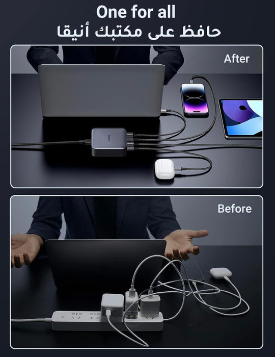 شاحن سريع لسطح المكتب بقوة 200 واط متعدد المخارج بتقنية GaN من UGREEN