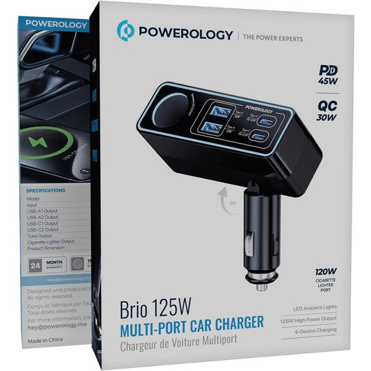 شاحن سيارة بريو متعدد المنافذ بقدرة 125 واط من Powerology