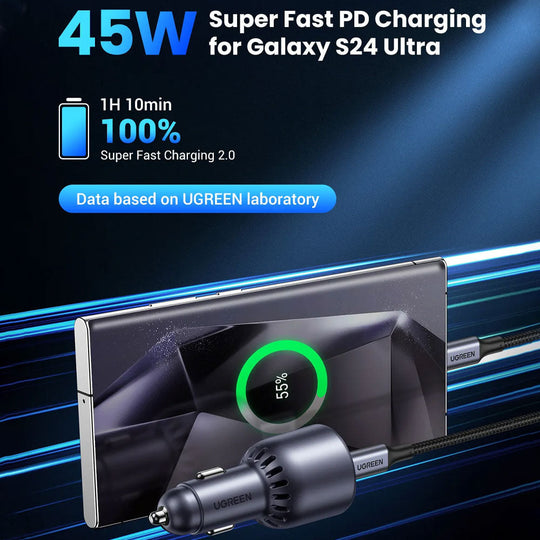شاحن سيارة PD Type-C + USB بقدرة 63 واط من UGREEN