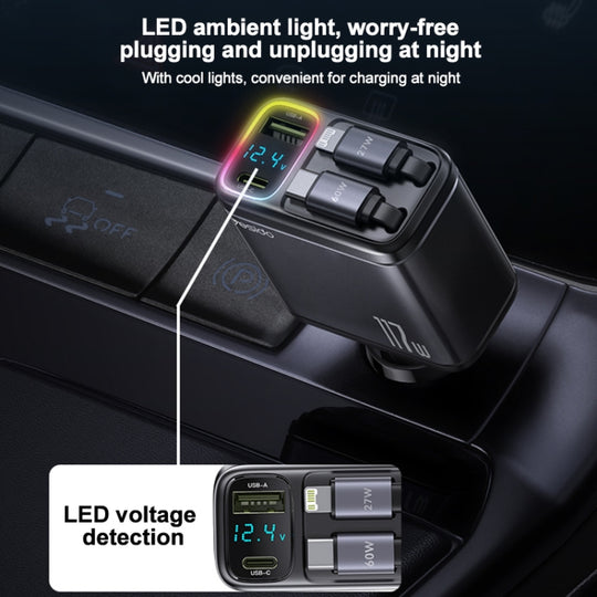 شاحن سيارة سريع 4في1 مع كابلات Type-C قابلة للسحب وجهاز تحكم عن بعد