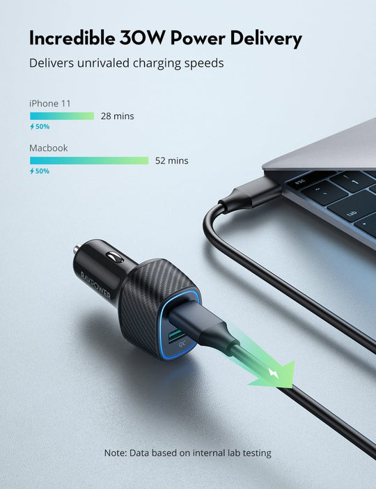 شاحن سيارة سريع بقوة 60 وات مع منافذ PD و QC من RAVPower