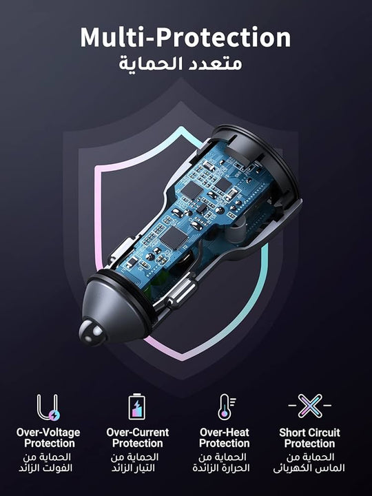 شاحن سيارة سريع بمنفذين بقوة 52.5 واط - أسود من UGREEN