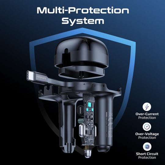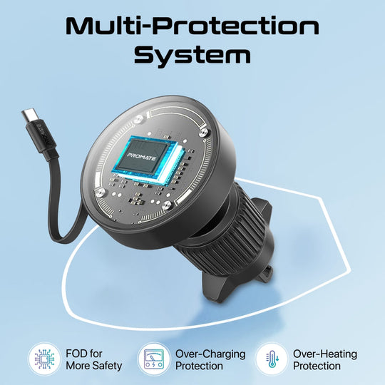 شاحن سيارة متعدد المنافذ بقدرة 62 واط مع كابل USB-C قابل للسحب من Promate