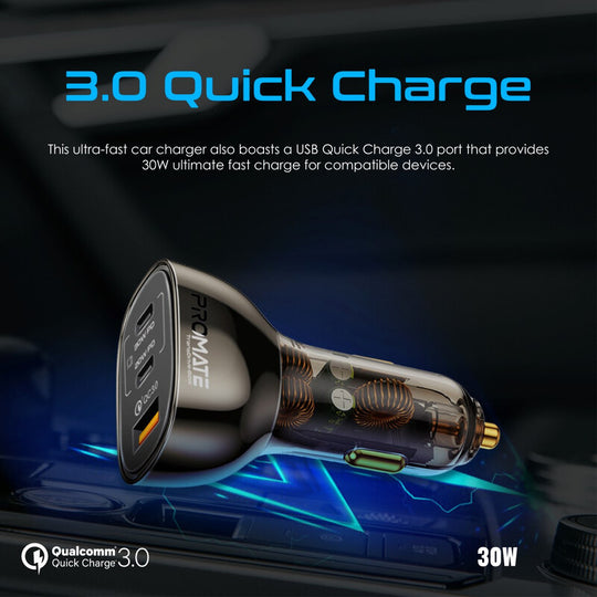 شاحن سيارة شفاف بقوة 80 وات السريع متعدد المنافذ من Promate