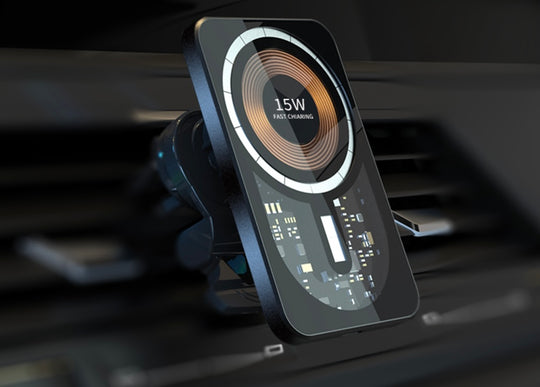 Promate MagSafe Car Wireless Charger 15w Transparent 360° Rotatable Ultra Compact design Gooseneck Mount, Ac Vent Mount Strong Magnetic Hold 15W MagSafe Wireless Charging Wireless Charging output: 5W/7.5W/10W/15W Input: 5V/3A, 9V/2A Included 1.2m cableRegular price AED 130.00 -