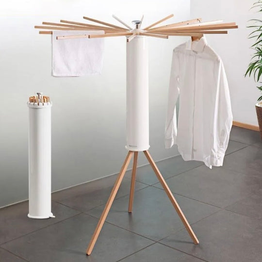 شماعة تجفيف الملابس قابل للطي ذات قواعد خشبية