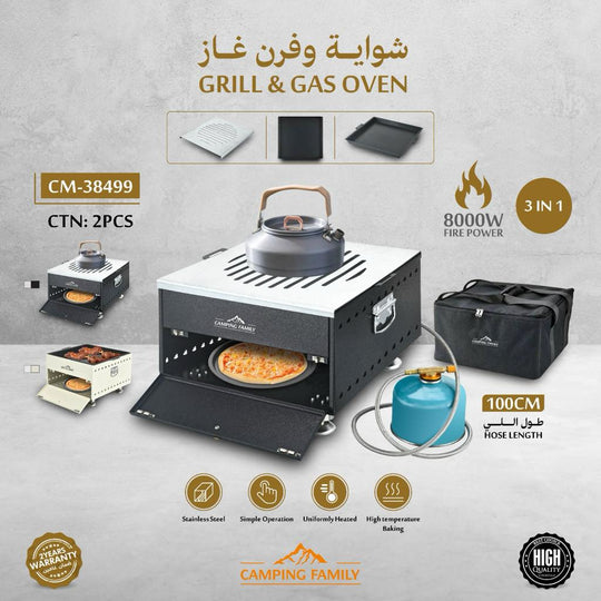 شواية وفرن غاز 3 في 1 بقوة 8000 واط من CAMPING FAMILY
