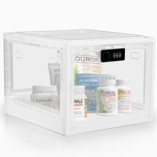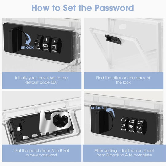 صندوق شفاف لتخزين الأغراض والأقفال عليها برقم سري