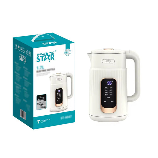 No reviewsاستمتع بتحضير مشروباتك الساخنة بسهولة مع Winning Star ST-6047، الغلاية الكهربائية المثالية للاستخدام في المنازل والفنادق وحتى أثناء السفر. تتميز بسعة كبيرة وتصميم من الستانلس ستيل عالي الجودة مع عزل حراري ممتاز للحفاظ على حرارة الماء...Sale price AED 155.00Regular price AED 225.00 -