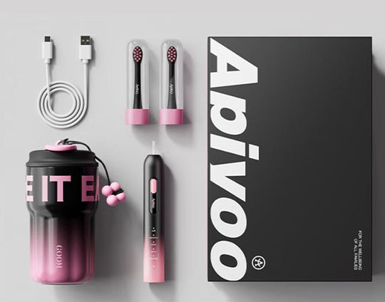 فرشاة أسنان كهربائية مع كوب شرب، موديل T15 من ApiYoo لون وردي