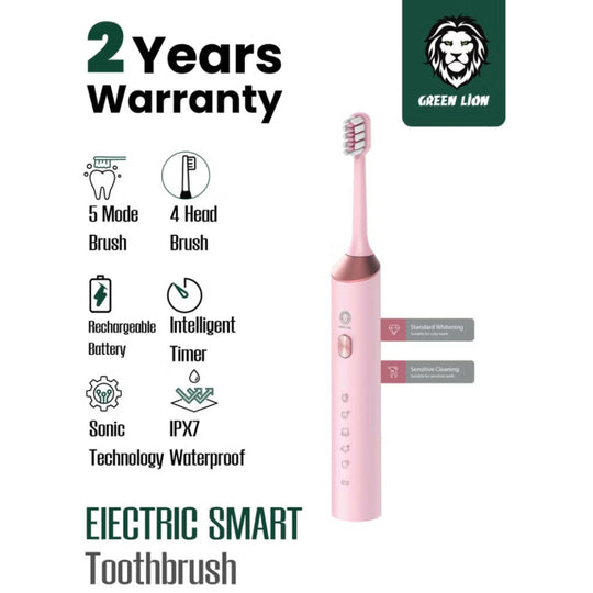 فرشاة أسنان كهربائية بـ 5 أوضاع و 4 رؤوس للفرشاة ، مناسبة للأسنان الحساسة والملونة من Green lion