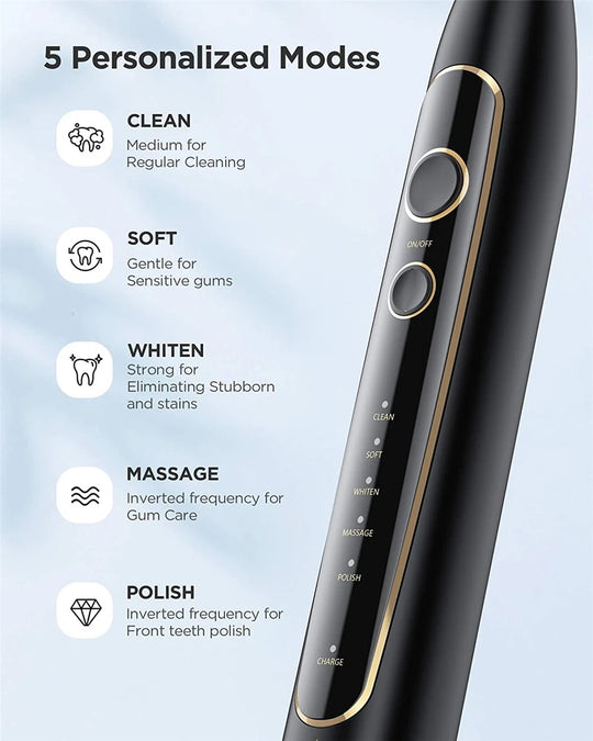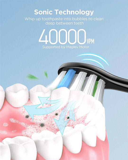 فرشاة أسنان كهربائية ذكية سونيك بذاكرة أوضاع وتنظيف متعدد – شحن Type-C ومقاومة للماء IPX7 من Porodo