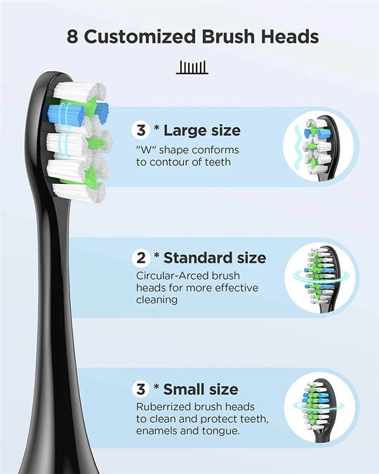 فرشاة أسنان كهربائية صوتية محترفة من Fairywill FW-2056 مع 8 رؤوس فرشاة بديلة وعلبة سفر