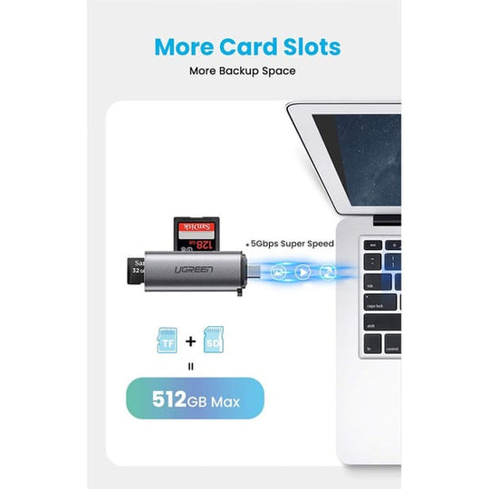 قارئ بطاقات الذاكرة سرعة فائقة وتصميم محمول من UGREEN