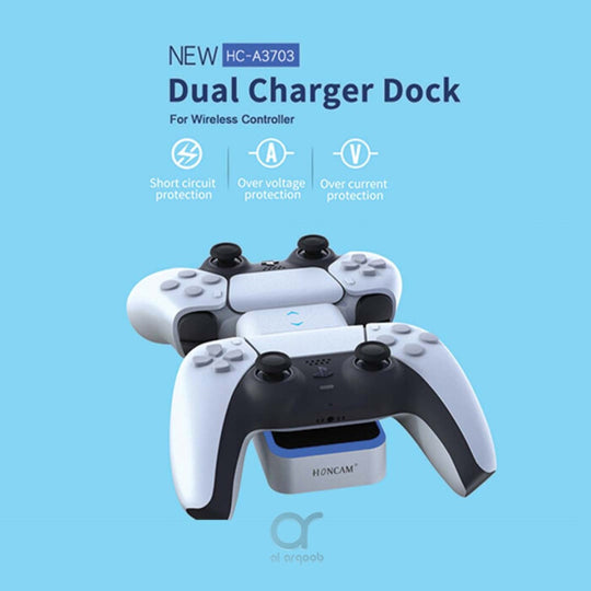 قاعدة شحن مزدوجة لأيدي تحكم PS5 مع إضاءة زرقاء من Brave