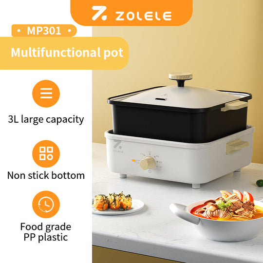 قدر الطهي الكهربائي 3 في 1 متعدد الوظائف 3 في 1 سعة 3 لتر مانع للالتصاق بقدرة 800 واط ولوحة تحكم من نوع المقبض وصينية قابلة للازالة من ZOLELE