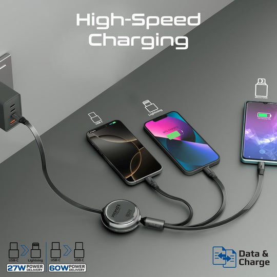 كابل 3 في 1 سريع وقابل للسحب بطول 110 سم من Promate