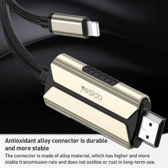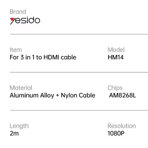 كابل HM14 Yesido Max 1080P عالي الدقة مع شحن USB 3 في 1 لتحويل IP/Micro/Type-C إلى HDMI