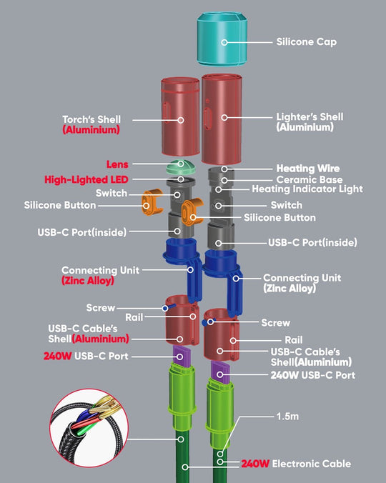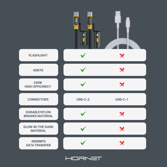 كابل HORNET 240W Turbo Charging ( كيبل + ولاعة + كشاف )