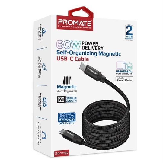 كابل USB-C مغناطيسي ذاتي التنظيم لتوصيل الطاقة بقوة 60 واط من PROMATE