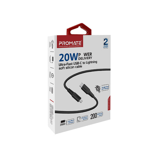 كابل شحن بقوة 20 وات من USB-c إلي Lightning من Promate