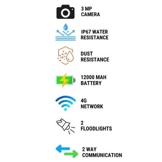 1. مستشعر كاميرا بدقة 3 ميجابكسل للحصول على وضوح إضافي 2. تعمل بالطاقة الشمسية مع لوحة بقدرة 5 واط مرفقة 3. بطارية بسعة 12000 مللي أمبير تتيح عمر بطارية يصل إلى 30 يومًا* 4. اتصال ثنائي...Sale price AED 385.00Regular price AED 415.00 -