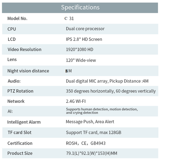 : فيديو توضيحي https://www.instagram.com/reel/CxDCiDKPIEc/?igshid=MzRlODBiNWFlZA== **الميزات الرئيسية:**- **جودة الفيديو العالية:** تأتي هذه الكاميرا بدقة فيديو عالية الجودة بدرجة 1080 بيكسل، مما يضمن تسجيل صور واضحة وحادة.- **مكالمات فيديو بنقرة واحدة:** يمكنك الاتصال بالكاميرا بنقرة واحدة عبر تطبيق...Sale price AED 185.00Regular price AED 245.00