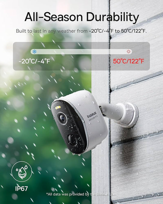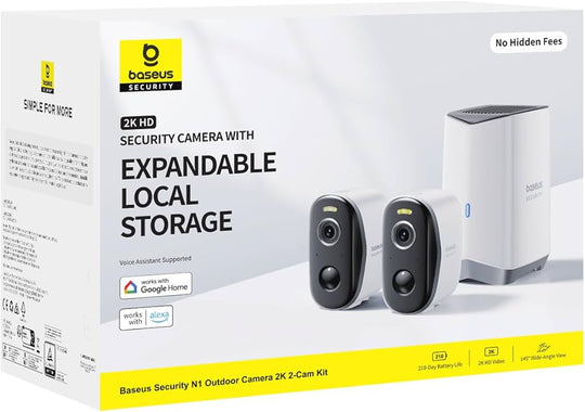 كاميرات مراقبة منزلية لاسلكية بدقة 2K، بدون رسوم اشتراك، بطارية تدوم 210 يومًا، رؤية ليلية ملونة، تخزين محلي حتى 16 تيرابايت من Baseus