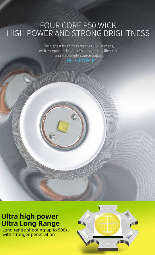 كشاف محمول يضيء حتى بُعد 3000 متر مع إضاءات مختلفة ويدعم شحن الهاتف موديل GT50