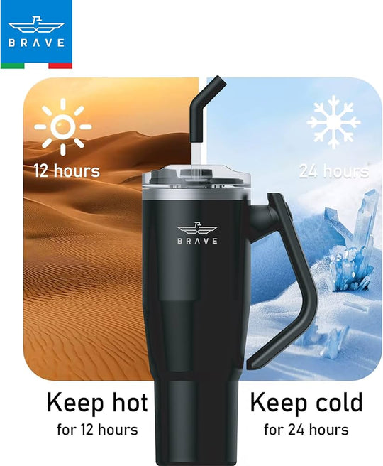 كوب عازل للحرارة بسعة 1200 مل عزل فائق 12 ساعه للمشروبات الساخنة و24 ساعة للباردة من Brave