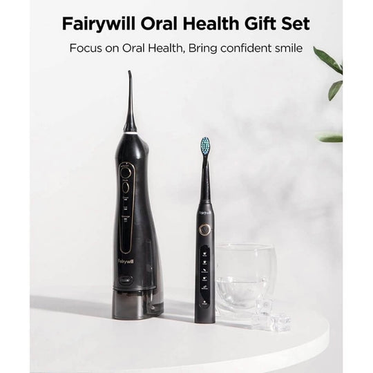 مجموعة العناية الفم المتكاملة تشمل فرشاة الأسنان والخيط الأسنان المائي من Fairywill