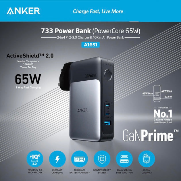شاحن متنقل وفيشة شحن جدارية بقوة 65 واط من Anker