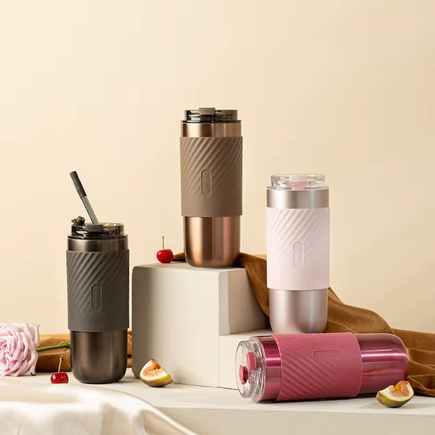 كوب بسعة كبيرة مضغوط هدية كوب من الفولاذ المقاوم للصدأ آمن للطعام بسعة 520 مل مريح ومقاوم للماء