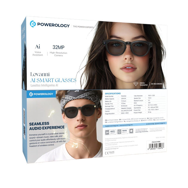 نظارة شمسية مزوده كاميرا بدقة 32 ميجابكسل وسماعة ستيريو، تحكم باللمس، ومساعد صوتي بالذكاء الاصطناعي من Powerology