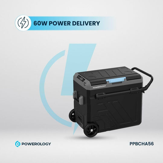 ثلاجة وفريزر ذكية مزدوجة المقصورة، بطارية 20800 mAh، بي دي 60 واط، 57 واط، تبريد ثنائي المنطقة من Powerology