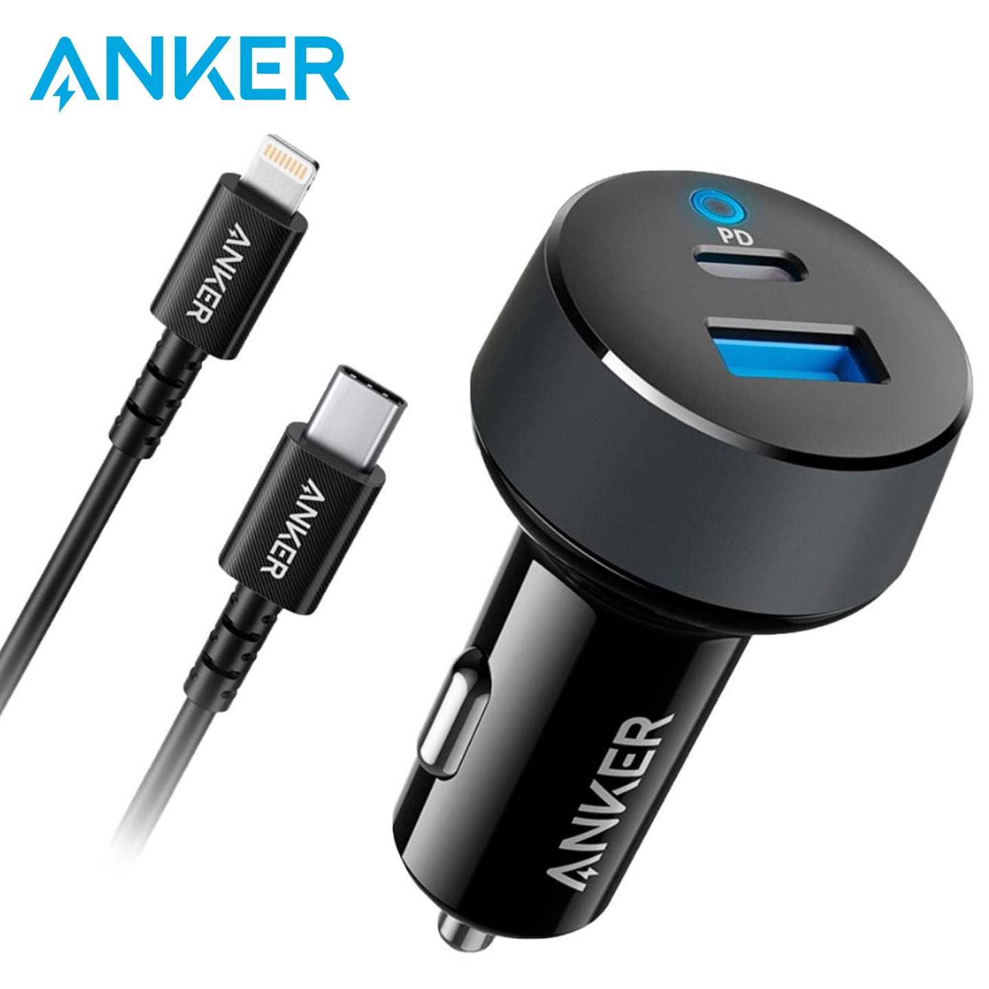 فيشة شحن للسيارة مع كيبل Anker PowerDrive Classic PD 2 with Charging Cable 30W USB-C Charger and USB-C Canle with Lightning Connector 0.9m 3ft