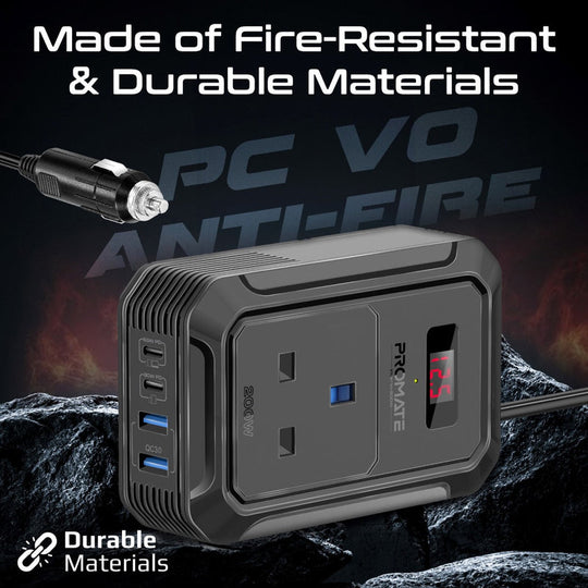 محول طاقة متعدد المنافذ من DC إلى AC بقدرة 200 واط من Promate