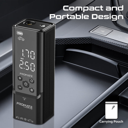 مضخة هواء محمولة بقوة 150PSI مع باور بانك وكشاف LED من Promate