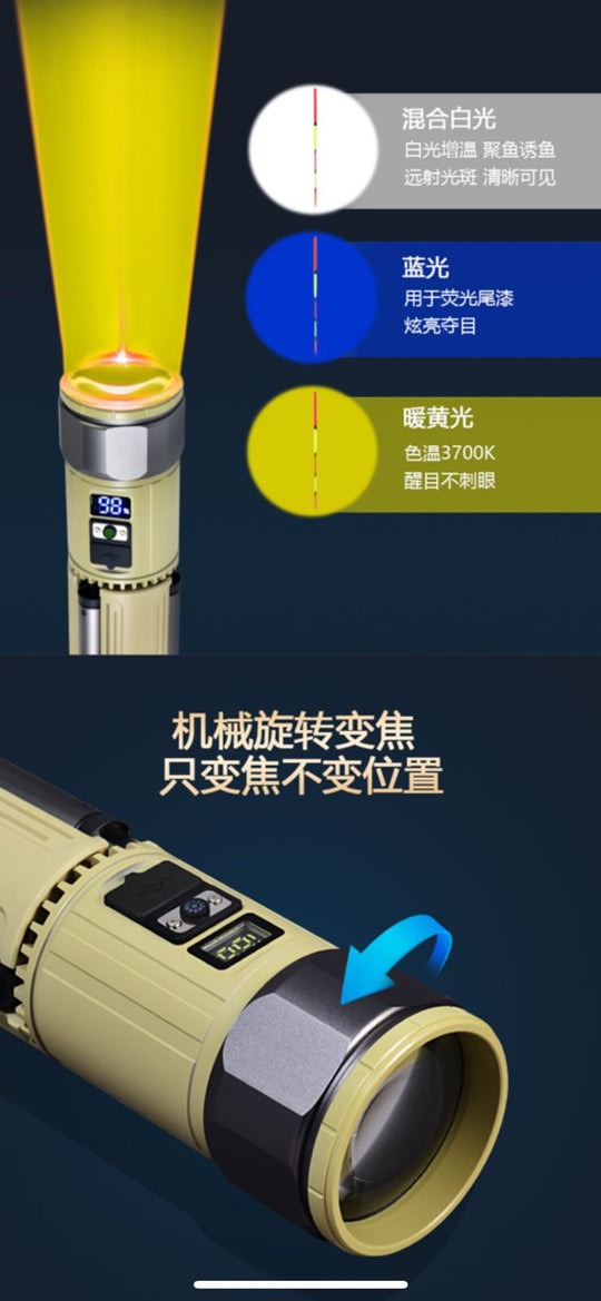 ضوء الصيد ليلاً بإضاءة عالية قابل لإعادة الشحن