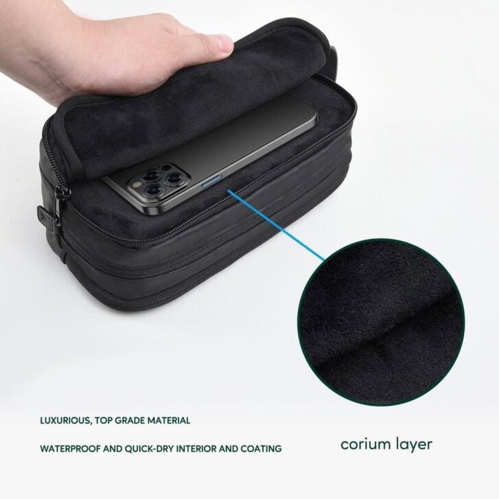 تحتوي الحقيبة على جيوب متعددة توفر مساحة كافية لحمل أدواتك المختلفة، بما في ذلك جهاز وغيره من الأدوات الأساسية. بالإضافة إلى ذلك، يمكن استخدام الحقيبة كمجموعة فاخرة للعناية الشخصية، حيث تتوفر فيها مساحات مخصصة لتخزين مستلزماتك الشخصية.
