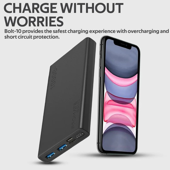 بنك الطاقة الذكي الصغير Promate بسعة 10000mAh مع منفذين USB