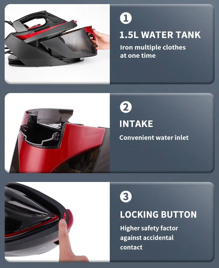 هذا المكواة البخارية عالية القوة مصممة لتقديم أداء ممتاز في كي الملابس. مزودة بلوحة بطلاء سيراميكي، تسخن بسرعة وتوزع البخار بشكل متساوي لضمان كي مثالي للأقمشة. تأتي بخزان مياه سعة 1.5 لتر، مما يسمح بتوليد كمية كبيرة من البخار بمعدل يبلغ 40 ± 5 جرام في الدقيقة.