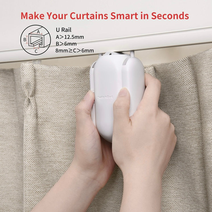 No matter it is Rod, U Rail track, or I Rail track, SwitchBot Curtain can always fit. Make sure you select the right type and measure the dimensions of your curtain rails, so it can work smoothly on your curtains.