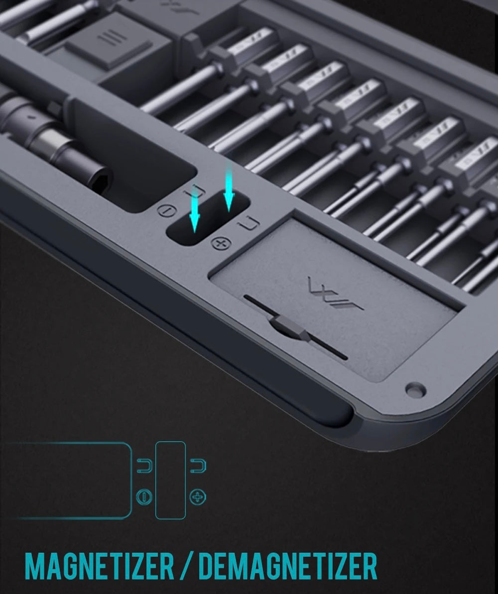 【Portable & Sturdy Case】Kept in JIMIHOME Snap to GO magnetic secure sturdy ABS plastic storage case, each part has a snug-fitting storage slot in the carrying case making portability and accessibility a cinch. Improve your work efficiency with our press & pop bit rack design for easy and fast bit identification. Features built-in magnetizer/demagnetizer and no more missing screws or small parts with the screw storing compartment design. Compact and lightweight design for easy transportation and storage. Easy fit into your pocket or tool bag.